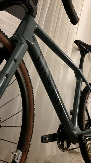 Bicicleta de gravel Canyon Grizl CF SL con cuadro de carbono. Cuadro: Grizl CF SL Cambio trasero Shimano GRX RD-RX822 12s Longitud de Caja: Medio Peso: 290 g Casete Shimano SLX CS-M7100 Número de piñones: 12 transmisión: 10-45 Bielas Shimano GRX FC-RX820 Número De Platos: 1 Pedalier Token Ninja Lite BB4124 Tipo de pedalier: PF 86,5 Peso: 85 g Cadena Shimano Deore M6100 Frenos Maneta de cambio y freno Shimano GRX BL-RX820 Número de Pistones: 2 Peso: 420 g