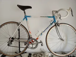 Bicicleta de carretera clásica de la marca Battaglin. Un modelo icónico para los amantes del ciclismo. En muy buen estado y funciona perfectamente. Talla 54. M. Grupo Shimano 600. Pieza de colección, italiana. - Cuadro de diseño clásico. - Manillar de carretera. - Ruedas de radios.