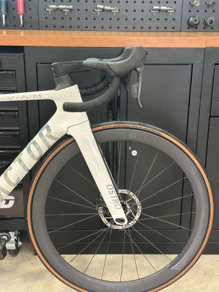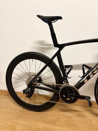 Bicicleta de carretera Factor Ostro V.A.M. Talla 52 - Cuadro y horquilla de carbono. - Grupo Sram Force Axs - Ruedas de carbono Black ink - Pedalier Ceramicspeed - Rodamientos dirección Ceramicspeed - Manillar integrado Black ink - Tija de carbono - Sillin Fizi:k Argo Adaptive Carbono - Talla 52 - Manillar 100x400 - Recién revisada para su venta - Conserva factura y garantia