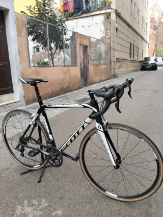 TIENDA de bicicletas REVISADA lista para rodar • Estamos en sants/badal 08028 calle begur 65 • 2 Meses de garantia • Telefono: 680205428 Mecanica: - Talla M - Peso 8 kg - Cambio: 9X2 - Shimano sora - Nuevo neumáticos - Revisada y puesta a punto no tienes que hacerle nada