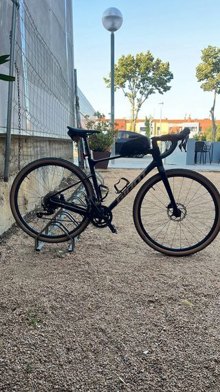 En venta Giant Revolt Advanced 3 del año 2023 en excelente estado. Una bicicleta de gravel versátil, ligera y lista para rodar tanto en asfalto como en pistas. Especificaciones Principales: • Cuadro y Horquilla: Carbono • Transmisión: cambio trasero Shimano GRX 400 (específico de gravel) y desviador/cassette Shimano Tiagra. • Bielas: FSA. • Frenos: Disco (Giant). • Ruedas: Giant P-X2 resistentes y fiables. • Neumaticos: Specialized Pathfinde 45mm • Talla: M. • Color: Negro. • Estado: Muy cuidada. Incluyo recibo original de compra. • Nota: Se entrega sin pedales (como viene de serie).