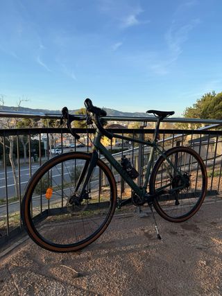 Bicicleta de gravel en color verde. Ideal para explorar caminos y senderos. - Cuadro y horquilla de aluminio. - Velocidades 2x 8, shimano Claris grupo - Frenosmecanicos, radius BH-600 - wm UB26 gravel wheels, R10/F9,6 bolt -rear derailler shimano claris SSD - Portabidón incluido. Hice algunas salidas pero es como nueva. Precio negociable