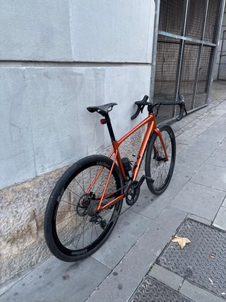 Bicicleta gravel Niner RLT9 en color naranja. Ideal para todo tipo de terrenos. -Talla L ( mido 1,80 m y voy bien). Tiene algunas rascadas del uso. Hay que hacerle algún ajuste en el cambio ( a cargo comprador). El resto va perfecto. La cambio por cambio de bici. - Cuadro de aluminio. - Ruedas American Classic RTX - Transmisión Sram X9. - Frenos de disco. -Discos nuevos. -cubiertas nuevas. -platos nuevos. -Pedales foto no incluidos.