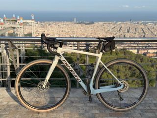 SOLO VENTA Bicicleta de gravel Megamo en color blanco crema y azul claro. Ideal para explorar caminos de gravilla y hacer bikepacking. - Comprada en junio 2025 (dispongo de la factura). - Cuadro de carbono. - Ruedas de 700c con neumáticos para gravel. - Frenos de disco de. - Cambio Shimano GRX. - Dos portabidones incluidos. - Talla M Me la vendo porqué me quiero comprar una bicicleta doble de MTB y una de carretera.