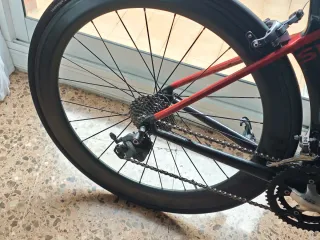 Cuadro talla M en aluminio 6061 Grupo Tiagra con plato 50/34 y cassette 10v 32/11, revisado. Frenos mecánicos revisados con pastillas nuevas. Neumáticos nuevos Goodyear Connector Ultimate 700x40 Tiene alguna marca del uso. Vendo por cambio a un nivel superior de bicicleta