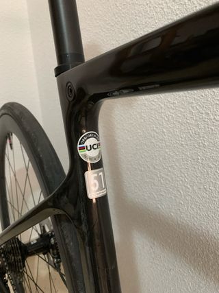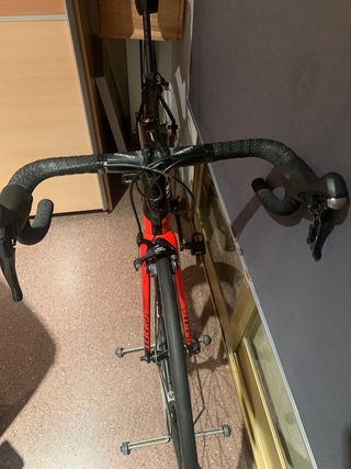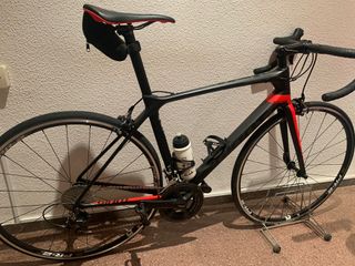 Con factura de compra y prácticamente sin uso. Comprada por mi sobrino que no la ha rodado más de cinco veces, ahora dice que no es su deporte... Talla M Con todos los componentes de origen. Puedes ver las Características en la web. A destacar cuadro y tija carbono composite. Decir que está como nueva es quedarse corto.