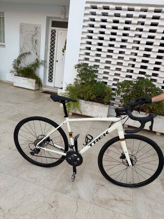 Vendo Trek Domane AL 2 Disc (Gen 3) del año 2021. Bicicleta de carretera endurance, muy cómoda y estable, ideal para entrenamientos y salidas largas. ✔️ Cuadro de aluminio Alpha ✔️ Frenos de disco mecánicos ✔️ Grupo Shimano Claris 2x8 ✔️ Ruedas 700c ✔️ Geometría endurance (Domane) 📌 Talla 54 – ideal para personas aprox. 1,70–1,75 m 📌 Muy poco uso. Ha estado la mayor parte del tiempo guardada. Las cubiertas tienen una ligera marca superficial por almacenamiento, no por desgaste de uso. Sin caídas ni daños estructurales. Lista para rodar. 📍 Entrega en mano 💰 Precio: 590 € 🚫 No cambios