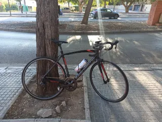 Bicicleta de carretera BTWIN TRIBAN en talla M. Ideal para iniciarse en el ciclismo de carretera. - Cuadro de aluminio. - Horquilla de carbono. - Frenos de disco. - Transmisión Shimano.