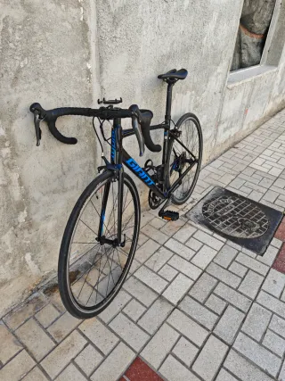 Bicicleta Decathlon Btwin VanRysel Ultra AF montada en talla M prácticamente nueva, muy pocos kms. Cuadro aluminio ligero y horquilla de carbono. Grupo Shimano Tiagra 10v con platos 50-34 y posibilidad de varios desarrollos en cassette (11-28, 11-32, 11-36). Pedales Time Xpresso. Manillar y tija de carbono. Admite cubiertas hasta 32mm.