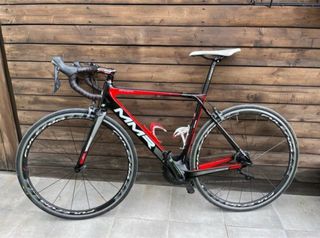 Bicicleta de carretera MMR adrenaline aero con un diseño deportivo en rojo y negro Ruedas fulcrum racing cuattro Talla M Montada en ultegra Cuadro de carbono