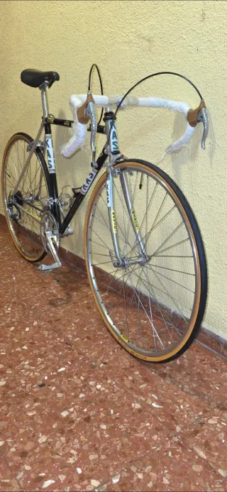 Bicicleta de carretera clásica de la marca Benotto, con un distintivo color morado y blanco. - Cuadro de color morado y blanco. - Sillín de cuero marrón. - Ruedas de radios. - Portabidón instalado. Las ruedas están nuevas, bici muy cuidada, está bien de todo.