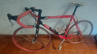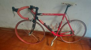 Bicicleta de carretera con un estilo retro. Es una megamo mortirolo de los años 90. Se encuentra en perfecto estado con pedales dobles de ciudad y calas de montaña. Se ha usado principalmente para ciudad y rodillo. Se encuentra en buen estado. Tiene un grupo 105. Igualmente tiene algunas pegatinas de proteccion por si se quiere usar por ciudad, se pueden quitar con facilidad. Descinozco la talla pero mido 1.80 y va bien. Creo que es adeacuada oara gente entre 1.70 y 1.85