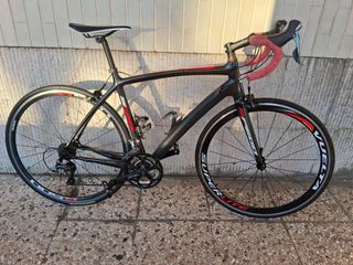 Bicicleta de carretera de carbono, marca SPEGO (de las tiendas francesas de deporte GOSport, tipo decathlon) Talla M (54). Mejorada - Cuadro y horquilla de carbono. - Ruedas Vuelta Superlite. - Manillar y potencia de aluminio. - Cambio shimano.
