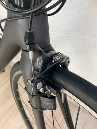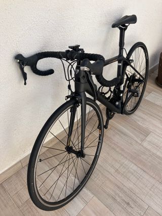 Bicicleta de carretera Triban en color negro. Ideal para iniciarse en el ciclismo. - Cuadro de aluminio. - Frenos de disco. - Cambio Shimano. -La compre hace un mes, ma he usado literalmente 4 veces, la vendo porque me han regalado otra bici.