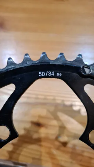 Plato para bicicleta de carretera marca FSA en color negro con 50 dientes. Para 5 tornillos BCD 110. Poco uso, se cambió para adaptar la bici a desarrollo de escuelas. - Diseño de doble plato.