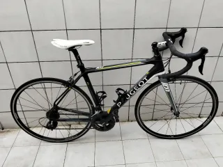 Bicicleta de carretera Peugeot en color negro y gris con detalles en amarillo. Muy poco uso, 11 velocidades, piñonera 11/28. Talla para persona de 1'68 a 1'75 m. Regalo piñonera 11/32 y cuenta kilómetros. Mejor verla.