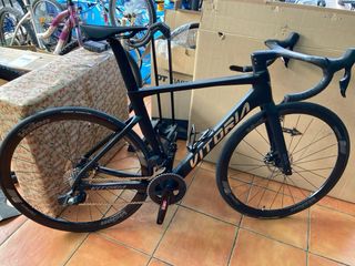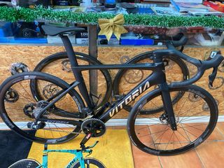Bicicleta de carretera marca Vitoria. (Nacional montada en Totana Murcia). -Ruedas Vision Team 35. - Manillar Vision carbono integrado - Cambio Sram inalámbrico 12s. Rival. - Desarrollo 48-35 platos, cassette 10-32. - Neumáticos 28” Vittoria Graphene 2.0 - Doble portabidon - Talla M ( a partir de 1,70 ) - Precio: 3.200€. NUEVA A ESTRENAR.!!! Con su garantía. !