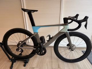 Bicicleta de carretera Factor O2 con un diseño llamativo. - Cuadro de carbono. - Ruedas de perfil. - Manillar y potencia integrados. - Transmisión de alta gama, Sram Force electronico - Talla 56 Factor - Edicion exclusiva