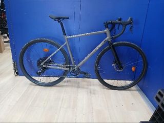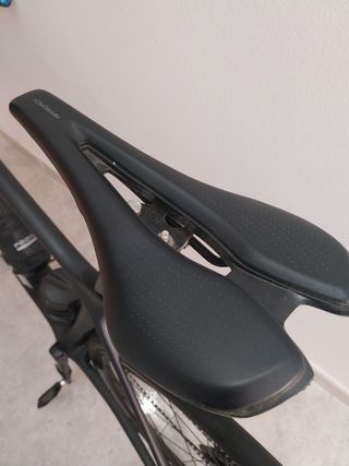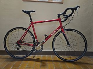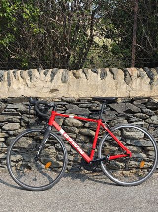 Bicicleta de carretera B-Twin en talla XL, ideal para ciclistas de mayor estatura. Diseñada para ofrecer un buen rendimiento en carretera. - Cuadro de aluminio. - Horquilla de carbono. - Ruedas de 700c. - Transmisión Shimano Se vende por cambio de bici a modelo superior.