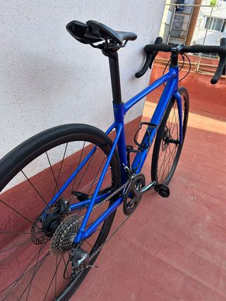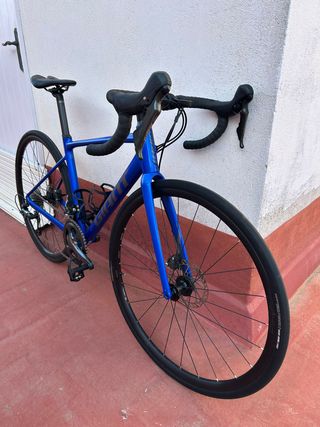 Características principales: Comprada en Mayo 2023 Cuadro: Aluminio ALUXX SL-Grade, ligero y resistente. Horquilla: Avanzada de carbono, para una mejor absorción de vibraciones. Grupo: Shimano Tiagra 2x10 velocidades. Frenos: Hidráulicos Shimano Tiagra, seguridad en carretera, son potente Ruedas: Giant S-R2 Disc, robustas y fiables. 70% Tamaño de neumáticos: 700x28c, con espacio para hasta 34mm. Talla S (1,54-1,74) Extras incluidos: Dos Portabidones ya equipados. Pedales con calas, listos para usar. Estado: Usada pero en condiciones impecables. Siempre guardada en interior y mantenida con cuidado.