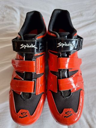 Zapatillas de ciclismo Spiuk, modelo Rodda Road, en color rojo brillante, diseñadas para carretera. - Cierre con velcro. - Suela con diseño deportivo. - Detalle del logo Spiuk en la lengüeta. Usadas 4 salidas Las vendo porqué vendí la bicicleta de carretera Talla 46 (calzan pequeño, yo uso 45)