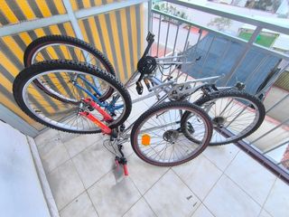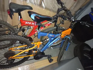 Se venden dos bicicletas de montaña con doble suspensión. Una de color rojo y otra azul con detalles naranjas. - Bicicleta roja con detalles blancos y negros. - Bicicleta azul con detalles naranjas y blancos. - Ambas con doble suspensión. Una 40€ las dos por 60€