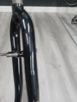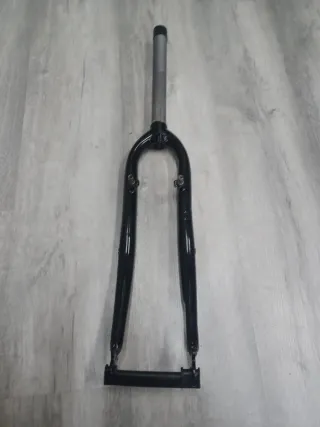 Horquilla de acero para bicicletas de carretera o híbridas de 700c. Fabricada en acero resistente y con un acabado negro brillante. - Material: Acero. - Color: Negro. - Diámetro de rueda: 700c.