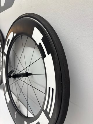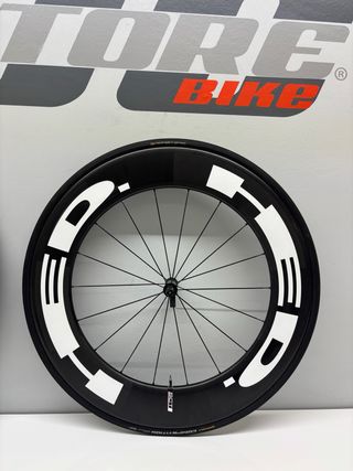 Rueda delantera de carretera HED JET SCT 90. - Perfil de 90mm. - Construcción en carbono. - Freno de zapata. - Tubular Continental competition 25mm - Tecnología Quick Release.