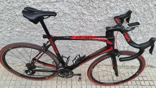 Cuadro de carbono talla 54 entre 1.72 y 1.78 más o menos Grupo Shimano integra 2x11 velocidades Se le han cambiado todos los cables y las fundas de ellos. Las cubiertas, cinta del manillar y zapatas de freno estan por estrenar. La bicicleta está en un excelente estado.
