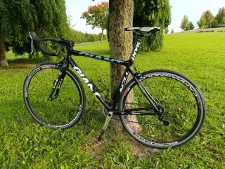 Bicicleta de carretera Pinarello Angliru en color azul. - Cuadro de aluminio y manillar de carbono - Componentes Shimano. - Ruedas de 700c. -Pedales no incluidos(se dejaran unos basicos) -Va a la perfección de cambios y frenos. Para salir a andar ya. Talla para 170-175. Yo mido 180cm y me va un pelin justa, pero la he estado utilizando sin problema.