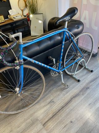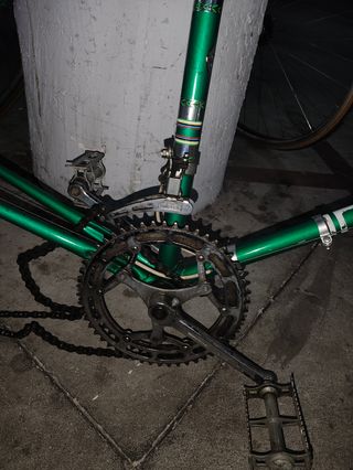 Bicicleta de carretera clásica de color verde, ideal para coleccionistas o amantes del ciclismo vintage para restaurar. - Cuadro de acero. - Componentes originales - Dos ruedas mavic con cierres y piñones. Ideal para un proyecto la vendo por no tener tiempo en restaurar.
