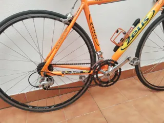Hola, se vende bicicleta de carretera Macario clásica. La bicicleta tendra mas o menos 30 años pero se dejó de usar hace mucho. Usada esporadicamente para hacer rodillo en casa, pero desafortunadamente ya no tengo sitio. Está perfecta y en persona es mucho mas bonita. Neumaticos Continental Ultra Sport 3 nuevos a estrenar puestos para venderla. Grupo 105. tija de carbono. Sillin Selle Italia Mhytos. Ruedas Mavic Sup. En su dia se montó por piezas, no existe otra igual. Medida del tubo del vertical 57cm Negociable