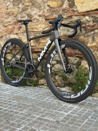 Bicicleta de gravel custom. Cuadro bxt 135 gravel con manillar integrado full carbon. Grupo inalámbrico Sram Rival 1x12 desarrollo 40-10/44. Llantas CSC 45mm con buje cerámico. Neumáticos Hutchinson Tuareg 40 tubelizados. Sillín 3d de carbono. Peso total 8'7 kg. Talla 49 equivalente a S/XS Solo 3 salidas literalmente total unos 70 kilómetros.