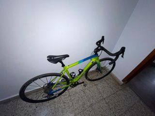 Bicicleta de carretera Btwin – ligera y cómoda, lista para rodar Se vende bicicleta Btwin de carretera/fitness, perfecta para moverte rápido por la ciudad o hacer rutas ligeras. Cuadro de aluminio, muy ligera y ágil. Componentes principales: Cambio trasero SRAM 3.0 y manetas Grip Shift de 7 velocidades. Triple plato Shimano Sora. Ruedas finas de 700c con cubiertas en buen estado. Frenos V-brake efectivos. Sillín cómodo y timbre incluido. La bici está en buen estado general y lista para usar, solo con marcas normales del uso y algo de óxido superficial en la transmisión. Ideal para quien busque una bici rápida, práctica y económic