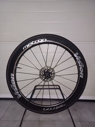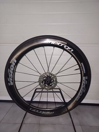 Venta de ruedas carbono, marca y modelo Vision Metron, perfil 55mm, tubular, con casete shimano durace y discos de freno.