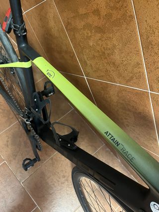 Bicicleta de carretera de la marca Cube, modelo Attain Race. - Cuadro de carbono. - Color verde degradado a negro. - Montada en 105 - Talla L - Incluye portabidones.