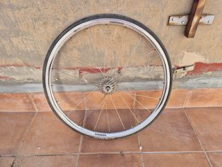 Se venden llantas y cubierta de bicicleta a estreno, no entiendo de esto con lo que no aseguro que pueda responder preguntas. El precio es orientativo ya que no se un precio real del producto. - Llantas de aluminio. - Cubierta de carretera. - Incluye disco de freno.