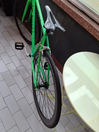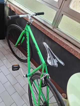 Bicicleta de carreras de color verde brillante. Ideal para paseos y entrenamientos. - Cuadro de aluminio. - Ruedas de 700c. - Sillín deportivo.