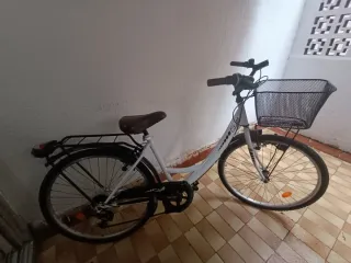 Bicicleta de mujer tamaño medio, tambien apta para niños. Los neumaticos estan cuarteados deberian cambiarse. Tiene algunos oxidos superficiales.