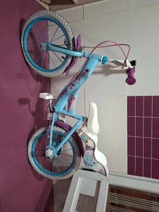 Bicicleta infantil de color blanco con detalles en azul. - Ruedas de 20 pulgadas. - Manillar con puños de goma. - Sillín negro. - Incluye pata de cabra. - Tamaño pequeño SOLO VALENCIA.