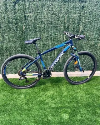 Bicicleta Btwin de color azul, ideal para paseos y rutas. - Cuadro de aluminio. - Ruedas de 29 pulgadas. - Frenos de disco. - Cambio Shimano.