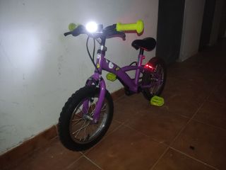 Bicicleta niño/a 14" Hello Kids. Altura manillar: 62 a 72 cm. Altura sillin: 46 a 58 cm. Largo 106 cm. Luces recargables por USB (olvídate de comprar pilas), delantera y trasera con cuatro modos, fija e intermitente. Muy poco uso (todavía tiene los pelillos de goma de las ruedas) y buen estado, como se puede apreciar en las fotos. Entra en mi perfil, quizás pueda interesarte alguna otra oferta.