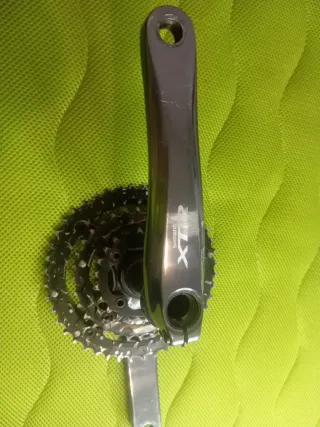 Bielas XTR con algún roce típico del uso y desgaste del logotipo en la zona Zapatilla del roce sin fisuras ni abolladuras con eje pedalier incorporado CONOR ORBEA LAPIERRE CANYON KTM FOX RITCHEY FELT MONDRAKER BPRO TREK GT MONTAÑA MTB CICLISMO XT XTR Avid hope BH cannadole mtb descenso