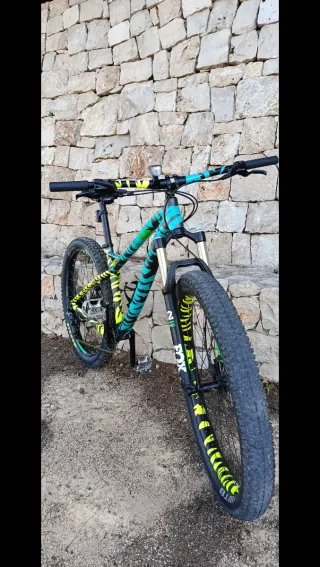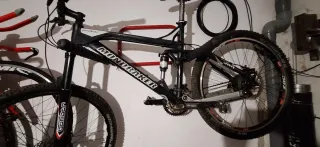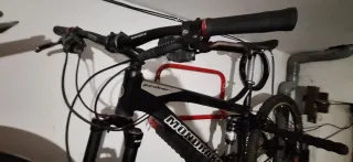 MTB mejorada con doble suspensión. Talla M. Mejoras: ruedas de carbono Hunt, frenos Shimano XT de 4 pistones, disco delantero Galfer, maneta nueva, pastillas delanteras nuevas, rodamientos del eje delantero cambiados y sistema tubeless nuevo en la rueda delantera. Tambien compre unos puños nuevos para cambiarlos y regalo pedales para descenso y calas. Tiene algún golpe/arañazo típico de uso, pero está en buen estado. - Tija telescopica - Ruedas de 29 pulgadas. - Frenos de disco hidráulicos. - Cambio Shimano. - Horquilla delantera RockShox. - Amortiguador trasero Fox. Negociable pero abstenerse ofertas ridiculas por favor.