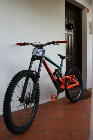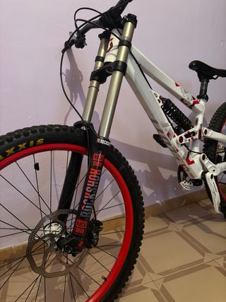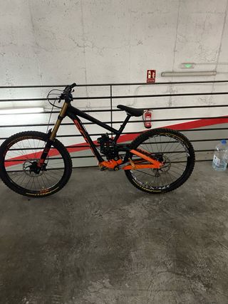 Bici de descenso con pequeña marcas de uso tipicas, pero funciona perfectamente. Talla M Ruedas 27.5 Horquilla Rockshox dual crown r Amortiguador Fox van Se vende por falta de interes. Para cualquier duda preguntar. Precio negociable. NO SE ACEPTAN CAMBIOS.
