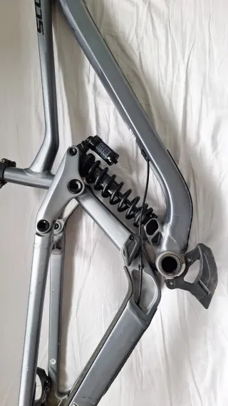 Cuadro de aluminio de bicicleta de descenso Scott Gambler, modelo 2024. Diseñado para el máximo rendimiento en terrenos exigentes y en la competición. - Color gris metalizado. - Incluye el muelle que venía de serie y otro para 50-60kg aproximadamente Tan solo un año de uso, se vende por cambio de talla.