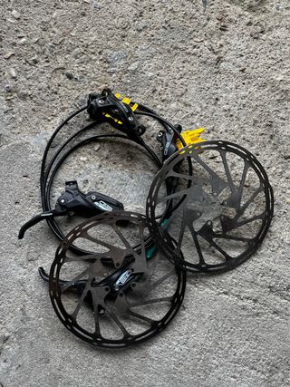 Se vende pareja de frenos SRAM G2 de 4 pistones. Se sacaron de una bicicleta eléctrica y tienen muy poco uso. Aún tienen las pastillas puestas. Ideal para bicicleta de MTB, enduro, descenso, ebike... También doy los discos de freno que están en perfecto estado! btt fox rock Shox freno de disco freno hidráulico sram code 2 pistones Trail Mondraker Scott specialized trek doble