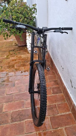 Doble suspensión perfecta para iniciarse en descenso, o enduro, o hacer rutas restándole impacto al trasero con una bici chula. - Pneumático delantero seminuevo 2.10 ancho y trasero nuevo Michelin (solo tiene un par de rodadas, se ve en la foto) - Cuadro de aluminio - Frenos de disco - Ruedas de 27.5 pulgadas - Componentes se ven en las fotos - Cuadro talla L Hace tiempo que no la uso, de ahí que la venda. No está perfecta, pero está muy bien. Solo le hace falta una puesta a punto rápida: Quitarle el polvillo. Engrasar suspensiones y regular el cambio de marchas porque se habrá destensado. Recámaras verificadas, están hinchadas.