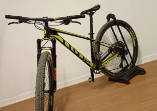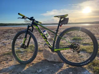 Bicicleta de montaña Scott Scale 940 en talla S. Ideal para senderos y rutas. es la bicicleta de montaña rígida ideal para los amantes de la velocidad y el rendimiento. Equipado con un cuadro ligero de carbono, este modelo destaca por su agilidad y resistencia en terrenos difíciles. Su transmisión Sram GX ofrece cambios precisos y suaves, permitiendo conquistar cualquier ruta con facilidad. Con una geometría optimizada para el trail, la Scale 940 garantiza comodidad y control en cada descenso.