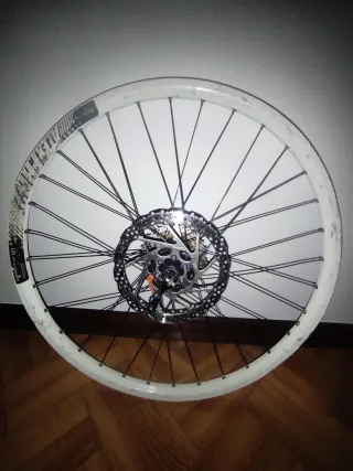 Se vende rueda delantera American Classic 29" pulgadas. Buje y aro American Classic Race, tope de gama en aluminio, con neumático Michelín DH34, ambos son tubeless, pero tiene puesta una cámara de aire. 32 radios en inox. 28mm ancho exterior. Para eje pasante 15x100 no boost. Centrada y con los rodamientos en buen estado. Se puede dar con disco de freno. Menos de dos kilos y medio con la cubierta de dh! Tiene alguna picadita, pero muy leves. No leer: llanta aluminio bici mtb, btt, trail, enduro, freeride, gravel, xc, Cross country, dh, downhill, descenso, mountain bike, mullet, fixie, fixed...